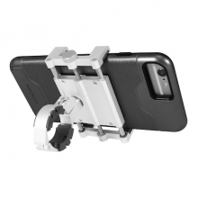 The BIKEMOUNT has an adjustable holder to fit iPhone/smartphone (with or without protective case) with a width of 57 to 87 mm (2 ¼ to 3 27/64 in). The holder grips have soft rubber pads to hold the iPhone/smartphone securely and protect it from scatches.