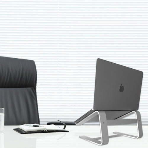 El soporte de aluminio ASTAND de Macally levanta la pantalla del portátil (hasta 15 cm) para situarla al nivel de los ojos y mejorar así la vista y la postura. De este modo, se reducen los dolores de cuello y de cabeza provocados por las malas posturas.