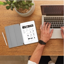 Supporte la fonction Veille/Éveil | Lorsque vous ouvrez l’étui, l’iPad quittera le mode veille. Si vous le refermez, l’iPad repassera en veille. Le cache frontal dispose également d’un aimant permettant de maintenir l’étui fermé lorsque vous ne l’utilisez pas.