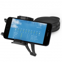 - Avec son système de fixation « tourner pour verrouiller », la ventouse s’installe en toute sécurité sur la plupart des tableaux de bord dont la surface est texturée ou incurvée.
