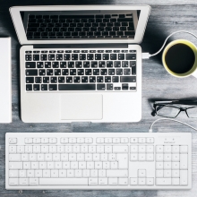 Le clavier QKEY est le nouveau clavier USB économique et ergonomique de taille standard à 105 touches de Macally pour Mac.