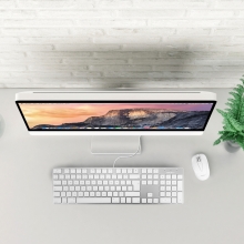 Le clavier USB Macally SLIMKEYPROA à disposition standard comporte 104 de taille standard mais néanmoins fines pour une saisie confortable et efficace. Le pavé numérique et les touches de raccourci supplémentaires contribuent également à l’efficacité et à la productivité.