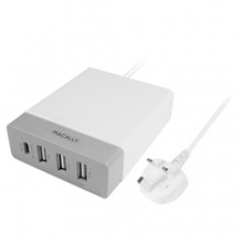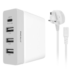 The Macally HOME72UC, 72W 4 port USB-C/USB-A wall charger (Type G plug: 3 pin British plug, mainly used in United Kingdom, Ireland, Malta, Kenya, Malaysia and Singapore), is specially designed to quickly and simultaneously charge your USB-C powered computer/tablet/smartphone, as well as any regular USB-A tablets/smartphones, at home, at the office or at any place with an available AC power socket.