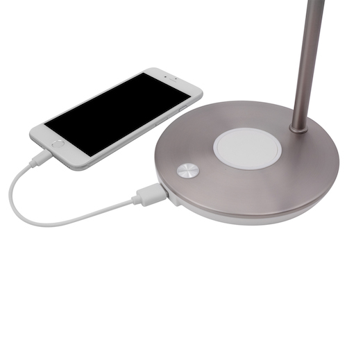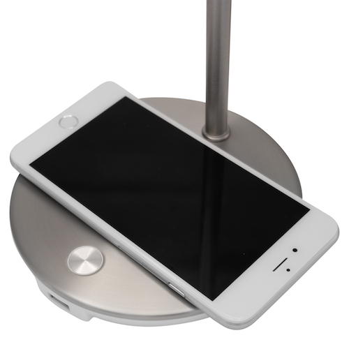 This clever lamp doubles as a charger and features two separate ways to charge your mobile devices. You can easily charge your Qi-certified smartphone wirelessly (up to 10W) by placing it on the wireless charging pad on the wide base of the lamp. Wide enough to fit any plus size smartphone!