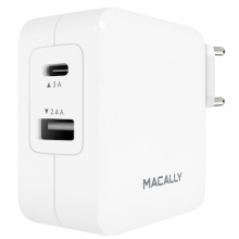 De Macally HOME24UC, een 24W netstroomadapter met 2 poorten (USB-C en USB-A), is speciaal ontworpen om uw smartphone of tablet met USB-C snel op te laden, en tegelijkertijd ook een smartphone of tablet met een standaard USB-A-poort op te laden. Thuis, op kantoor of, als u op reis bent, in een hotel. De Macally HOME24UC is geschikt voor een ingangsspanning van 100V tot 240V (wisselstroom).