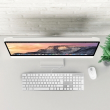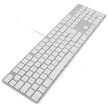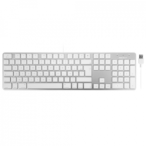 The Macally SLIMKEYPROA slim USB keyboard has a standard layout with 104 full size, yet thin, keys for a comfortable and efficient typing experience. The additional shortcut keys and numeric keyboard further increase efficiency and productivity.