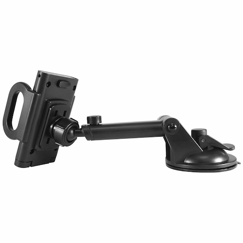 The Macally TELEHOLDER is a suction cup phone mount with an extendable telescopic arm and a universal holder that allows you to use your iPhone/smartphone for hands-free phone calls and GPS car navigation.